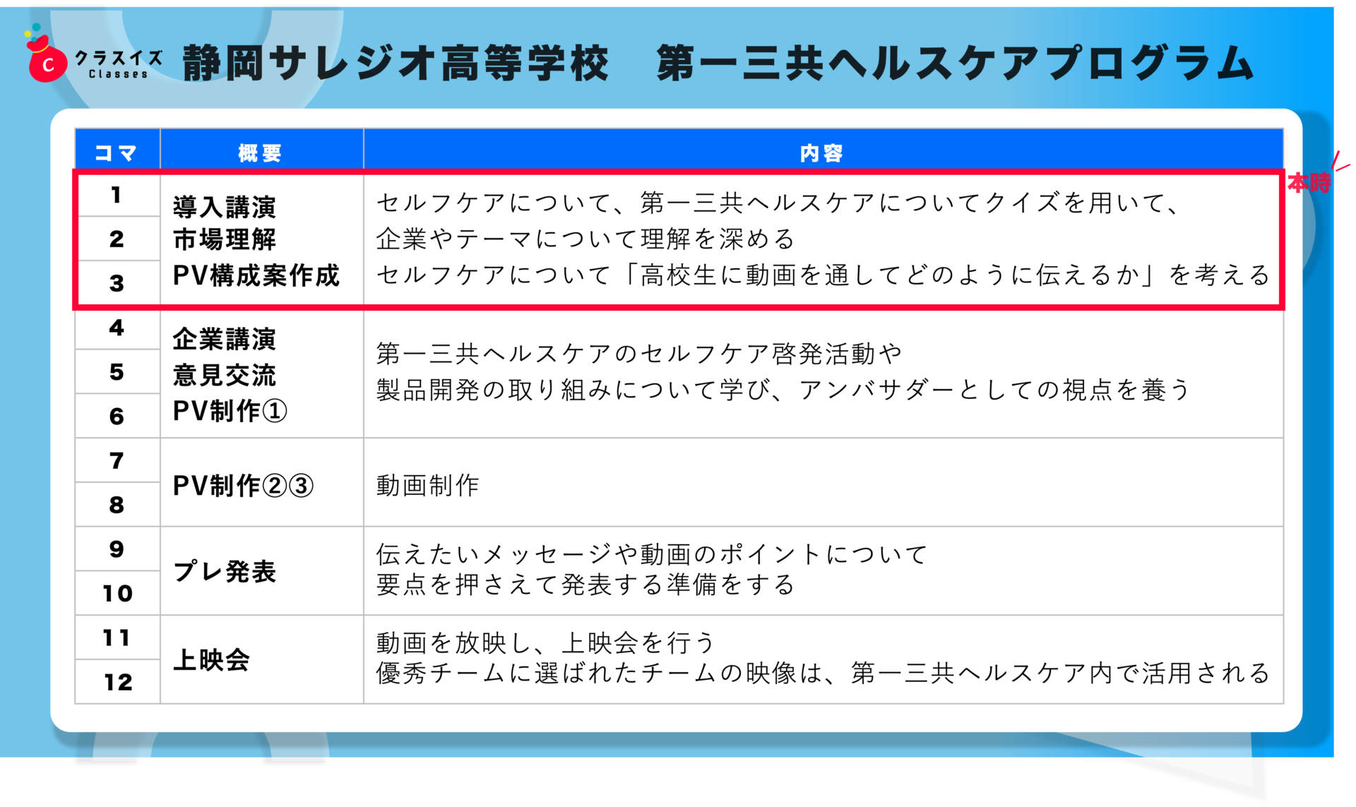 静岡サレジオ高校ソフィアコース(10年生)24名を対象に実施する、第一三共ヘルスケアとの連携プログラムです。