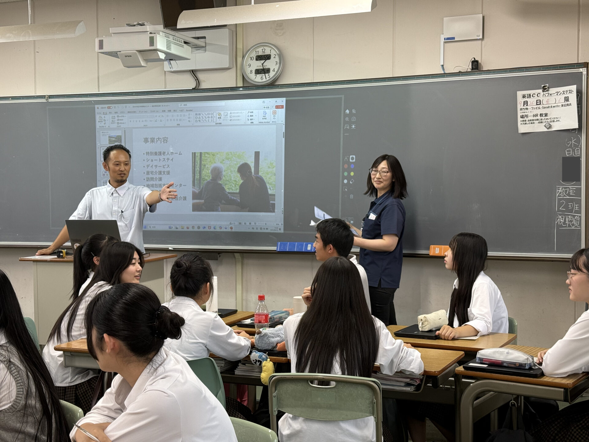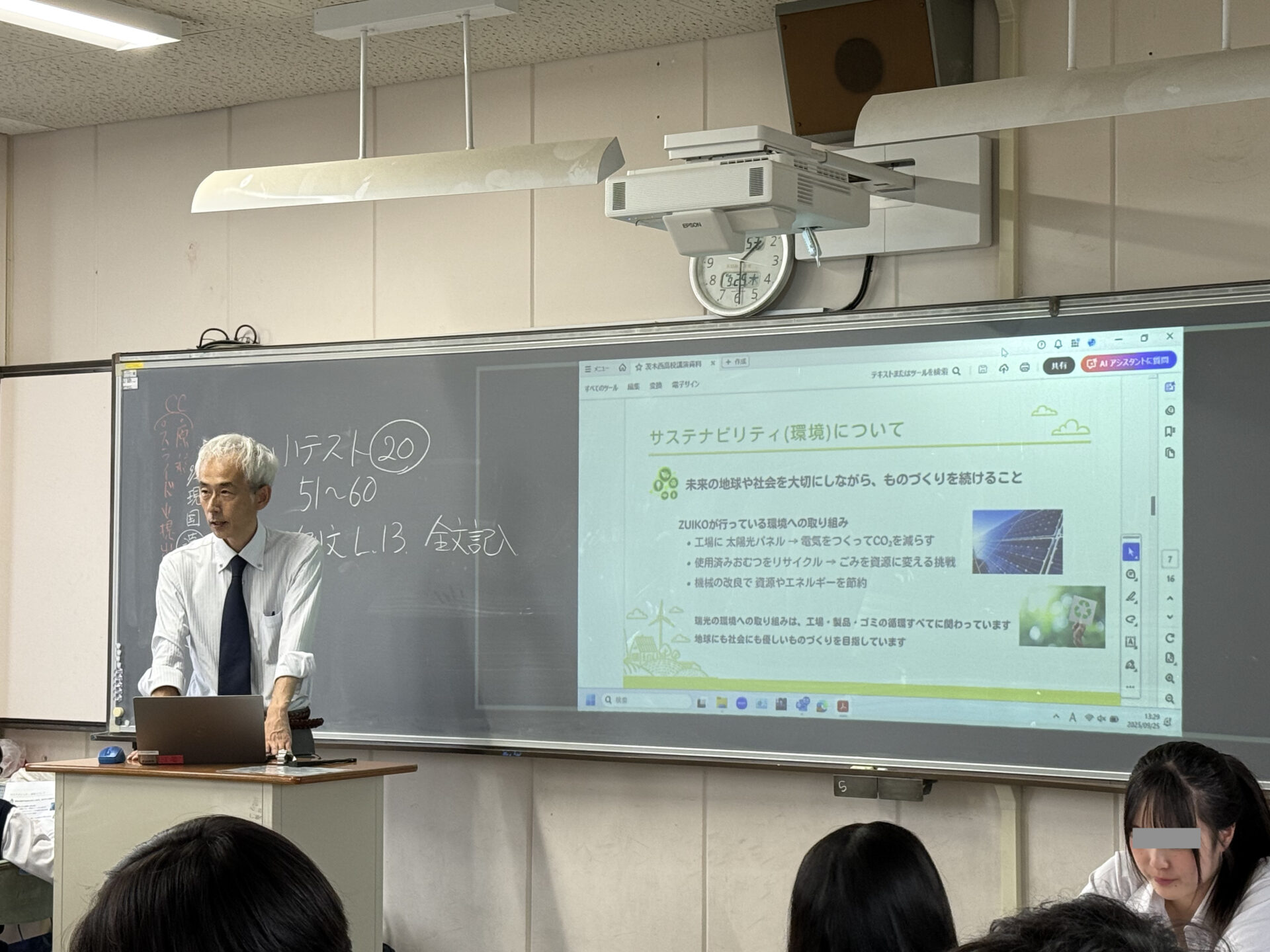 講演の後半では、各グループが事前に準備した質問をもとに質疑応答を実施。「なぜこの仕事を選んだのか」「地域の課題をどう感じているか」など、具体的で深い質問が多く、講師の方々も生徒一人ひとりの視点に丁寧に回答。教室内には活発な対話の雰囲気が広がり、生徒たちは“地域と企業のつながり”をより実感する時間となった。