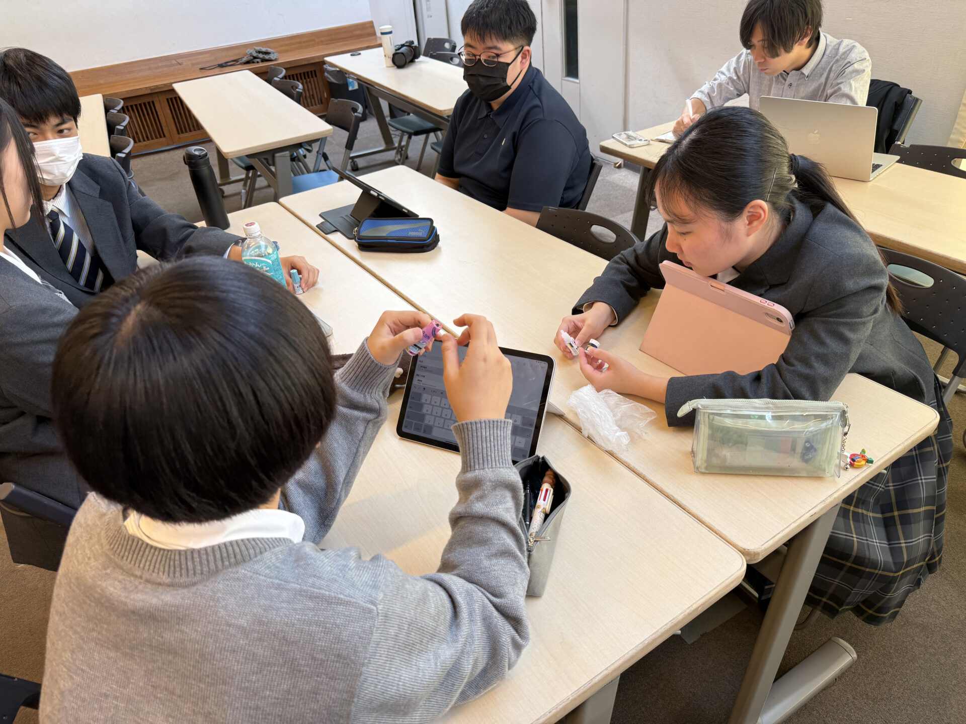 講演後半は、グループごとの質疑応答・交流の時間を設け、生徒からは「目薬を開発する際に一番大変なことは?」「なぜ参天製薬は“目”に特化しているのか?」など、多様な質問が飛び交った。
